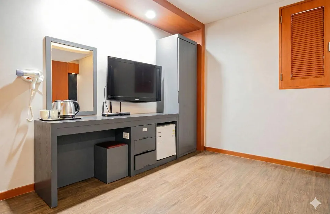 インチョン広域市にある宿泊は、全14室に食器棚、食器棚 と防音窓を備え、お客様をお迎えします。